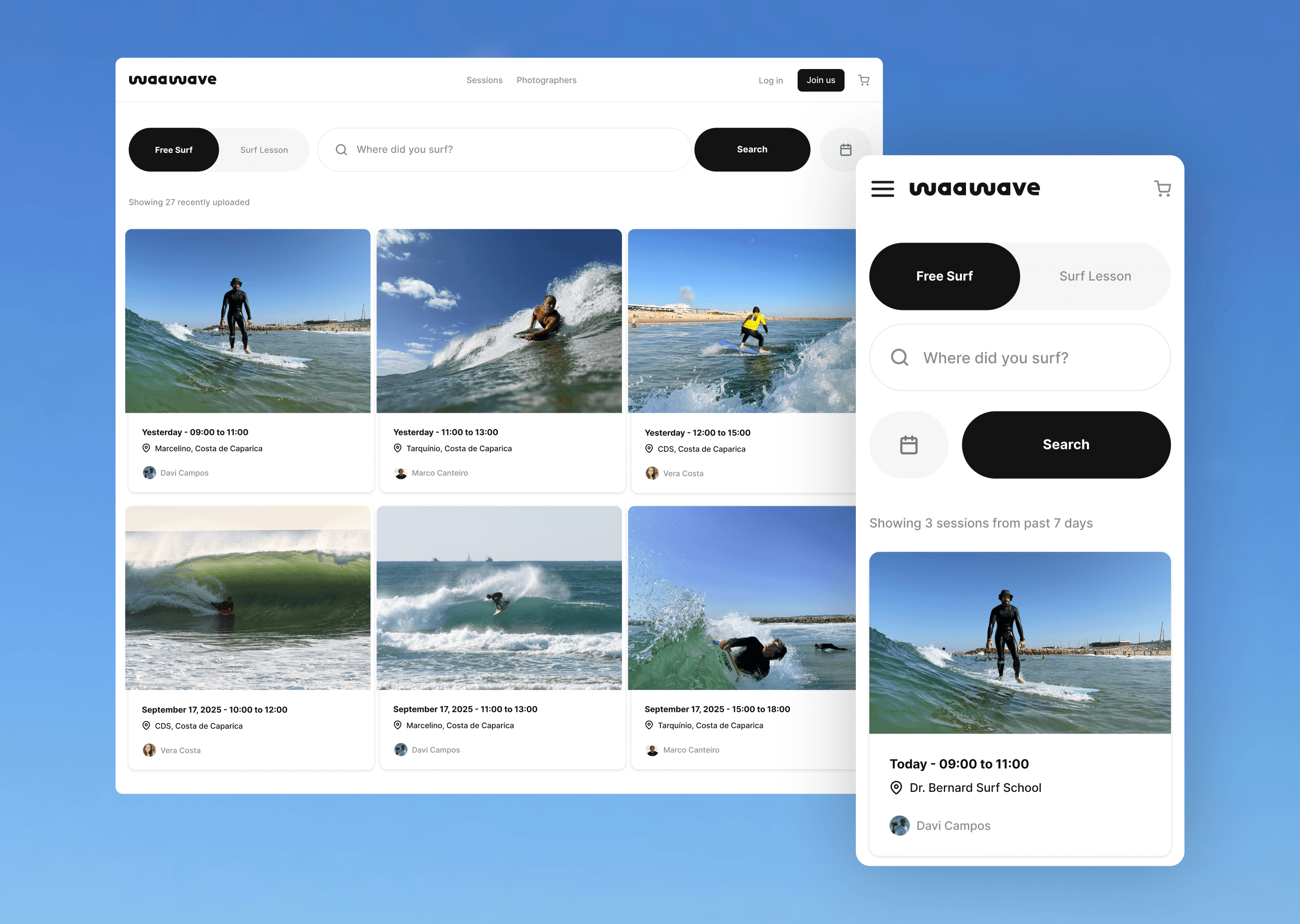 Experienced surfers knew the exact where they surfed but we discovered early that beginner surfers (surf school students) knew their school name but not the beach. Added "Free Surf" vs "Surf Lesson" search modes.